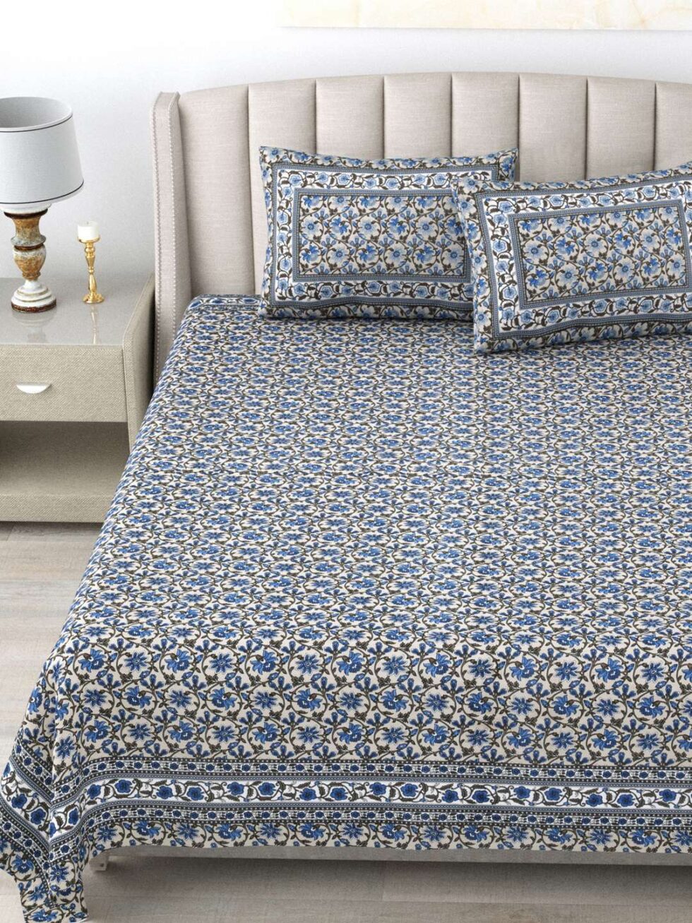 100% Pure Cotton Traditional Printed Bedsheet for Double Bed King Size Bedsheet with 2 Pillow Covers